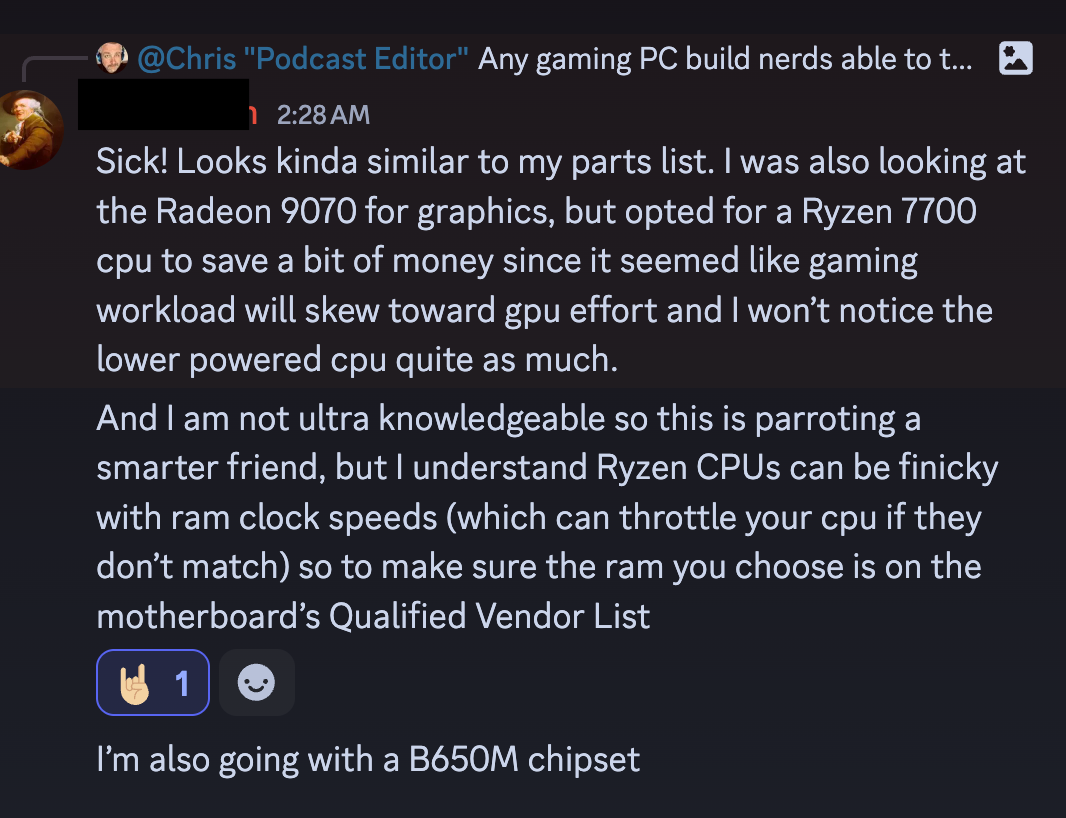 I've actually been helping my oldest kid research and put together a part list for his first PC build. And this post isn't about the finished product or a recap video of the build process and turning it on for the first time—we haven't even ordered any parts yet—but just taking a moment to appreciate the help of fellow nerds along the way.