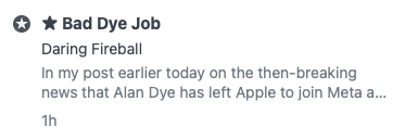 I love when I see the ★ in Feedbin from a John Gruber Daring Fireball post.